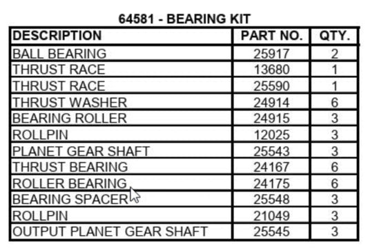 BRADEN® Model BG6A&B Bearing Kit for 29:1 Thru 67:1, Kit 64581