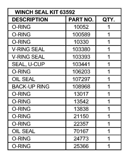 BRADEN® 3rd Gen CH Models Seal Kit Number 63592 W/V-Rings